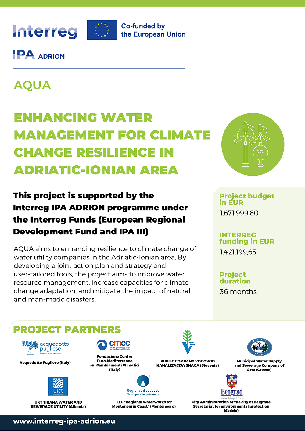 Il progetto, della durata di 36 mesi (settembre 2024 – agosto 2027), rientra nel programma Interreg IPA ADRION 2021–2027 e ha come obiettivo il miglioramento della resilienza dei servizi idrici dell’area adriatico-ionica rispetto ai cambiamenti climatici, attraverso lo sviluppo di strategie integrate e strumenti digitali avanzati – in particolare i Digital Twin, modelli virtuali che possono essere usati per simulare e prevedere il comportamento di sistemi idrici reali.