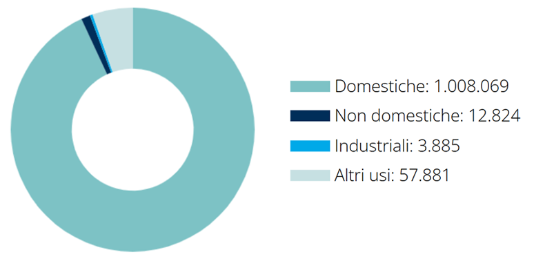 La composizione del bacino d’utenza, formato da oltre 1 milione di utenti, evidenzia la naturale prevalenza dell’uso domestico.